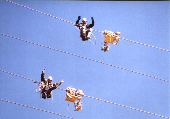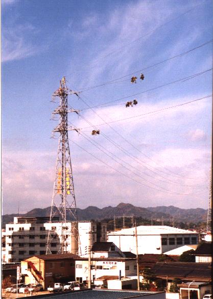 12月のはじめごろ、津田小学校のそばの高圧電線で、こんなすごい作業をやってました。